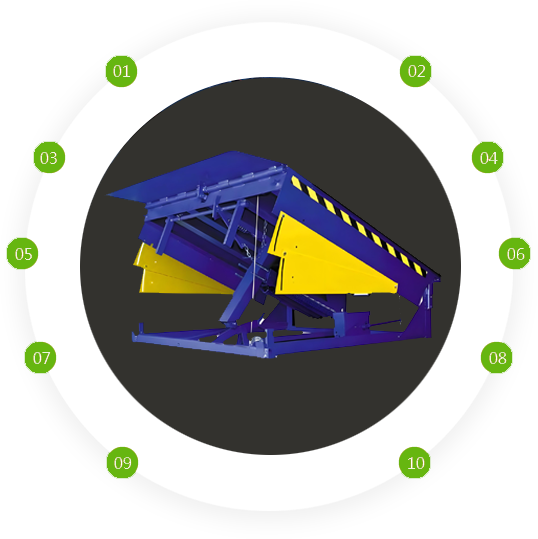 移動式登車橋:是與叉車配合使用的貨物裝卸輔助設備,可根據汽車車廂的高低調節高度,叉車可以直接通過本設備駛入車廂內部進行貨物的批量裝卸。